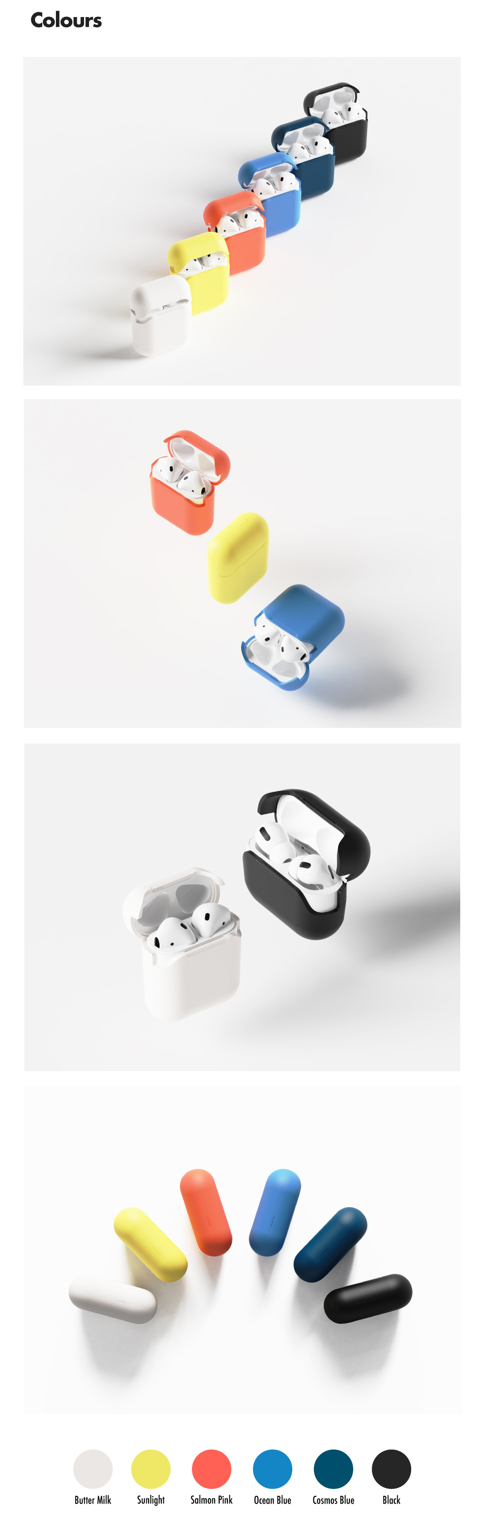 하단 부분은 일반 케이스처럼 밀어서 끼워주면 되고, 상단 부분은 내부에 있는 양면 테잎 필름을 벗겨 준 뒤 에어팟에 붙이면 끝!